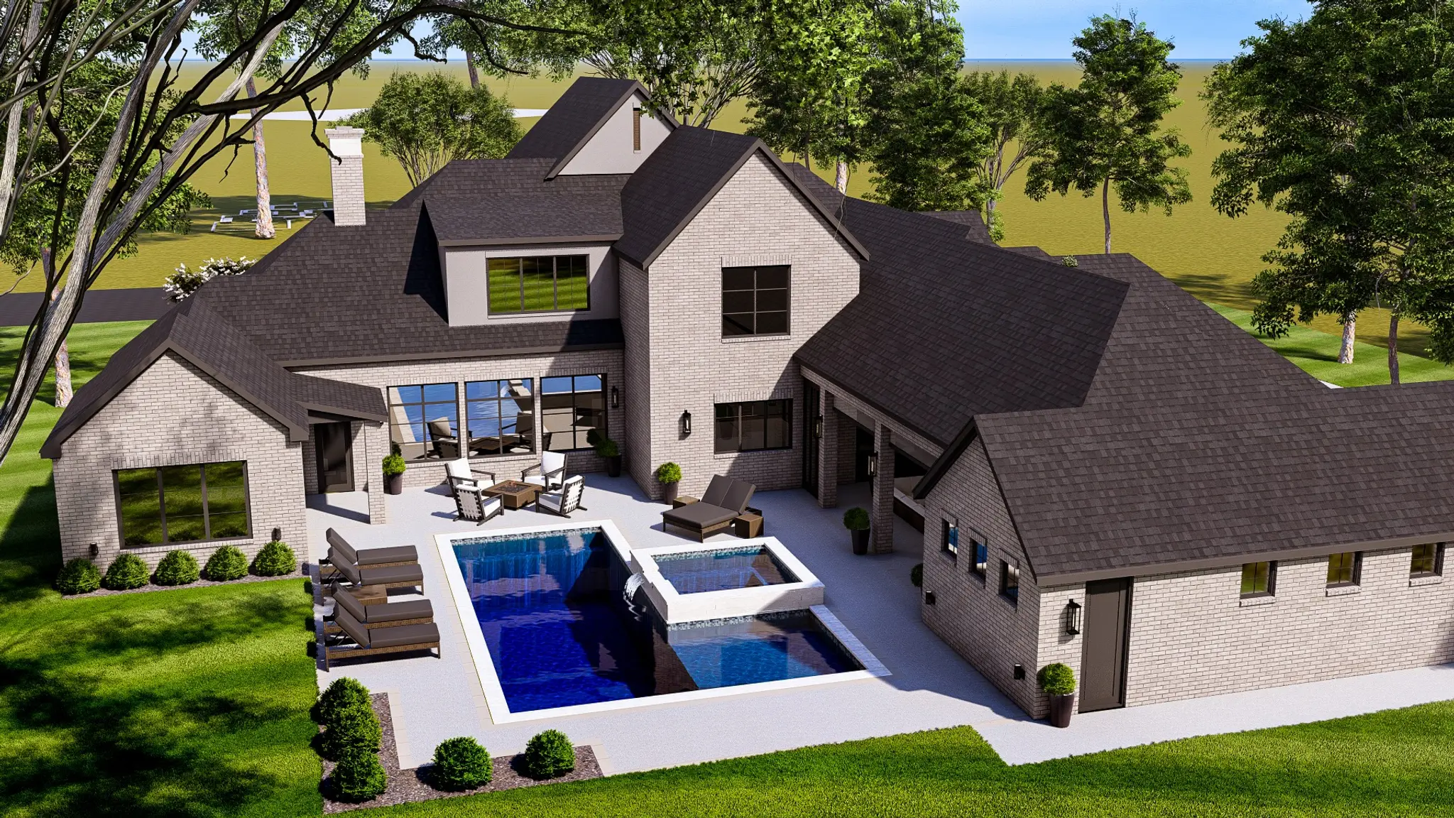 With 4,680 sq. ft. of interior living space and an impressive 6,945 sq. ft. under roof, The Paul Ray showcases expansive patios, oversized garage space, and flexible living areas rarely found in a single plan. A pool can be added to further enhance the outdoor experience, though it is not included in the listed price.