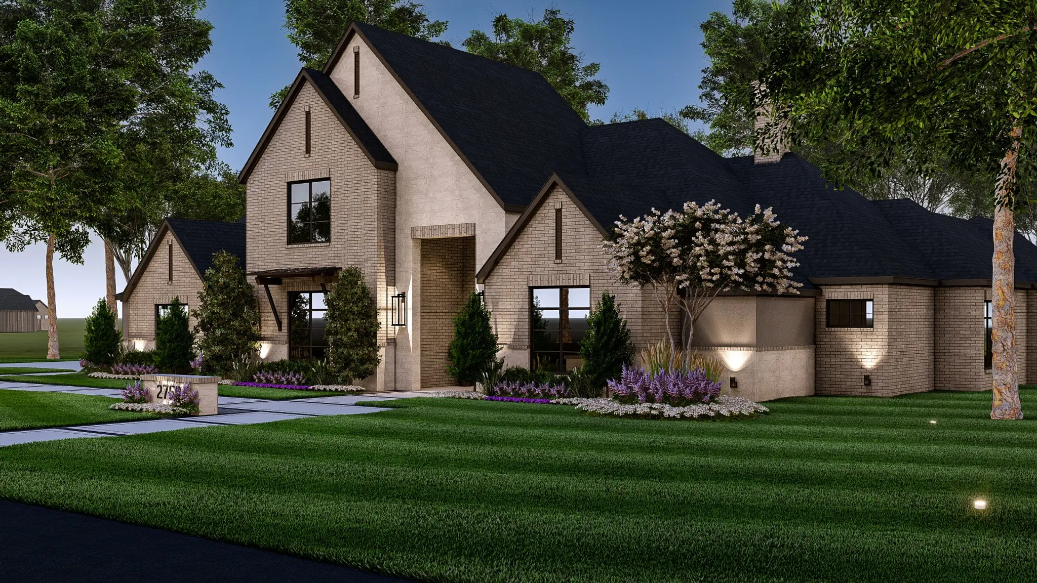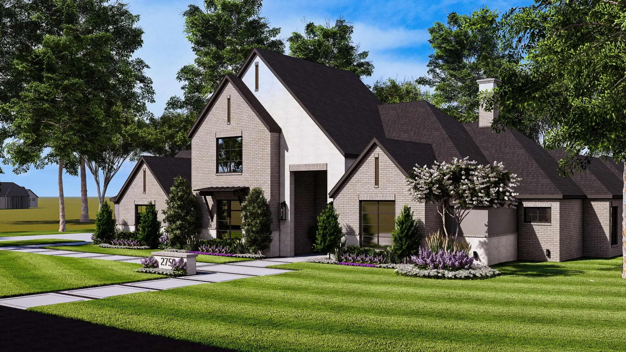 Every bedroom includes its own private bathroom, and bedrooms throughout the home are carefully positioned to maximize privacy. A side patio and side entrance provide a welcoming and functional access point for guests who prefer something more casual than the front door.